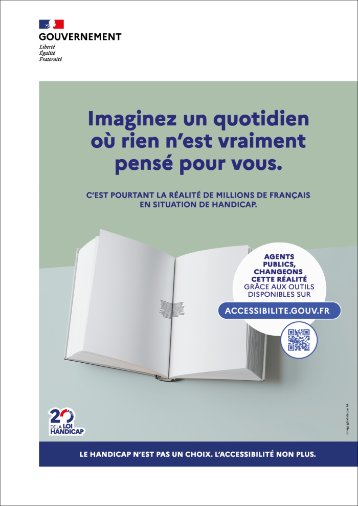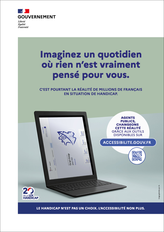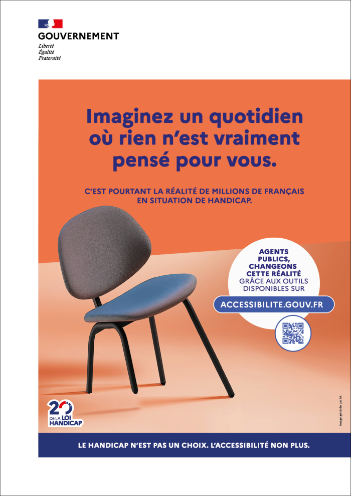Pour les sensibiliser aux enjeux et à la nécessité d’appliquer les normes d'accessibilité, il met à la disposition des équipes de communication interne, des responsables RH et des référents handicap une campagne de communication complète. Conçue autour du message « Imaginez un quotidien où rien n’est vraiment pensé pour vous », elle met en scène, dans des images générées par IA, huit objets du quotidien mal conçus et donc difficilement utilisables. Ce concept créatif vise à faire vivre ou ressentir aux agents des situations de « non-accessibilité » auxquelles sont confrontées les personnes en situation de handicap « pour favoriser l’empathie et leur faire prendre conscience de leur rôle clé dans l’amélioration de l’accès aux services publics ». « Le handicap n’est pas un choix. L’accessibilité non plus », peut-on lire sur les visuels de campagne.