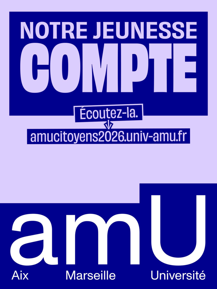 « Notre jeunesse compte. Écoutez-la », « Nos étudiants ont quelque chose à vous dire. Ce qu’ils veulent ». Sur les visuels de la seconde phase de com de l'amU, les aplats colorés et les gros caractères de la première phase de sa campagne citoyenne sont toujours là, mais les références à Jul, Théodora, ou au parler local ont laissé place à des interpellations plus directes. Car cette fois l’université ne s’adresse pas aux jeunes. Elle s’en fait le porte-voix auprès des candidats aux municipales en s’appuyant sur une enquête réalisée en décembre 2025 avec la Fondation Jean-Jaurès et l’Ifop auprès de plus de 5 000 étudiants. Sur chaque affiche, un QR code renvoie vers le site de la campagne qui présente les principaux enseignements de ce sondage sur l’engagement des jeunes, leurs attentes et leur rapport à la politique. Et rappelle au passage les dispositifs d’engagement de l’université.