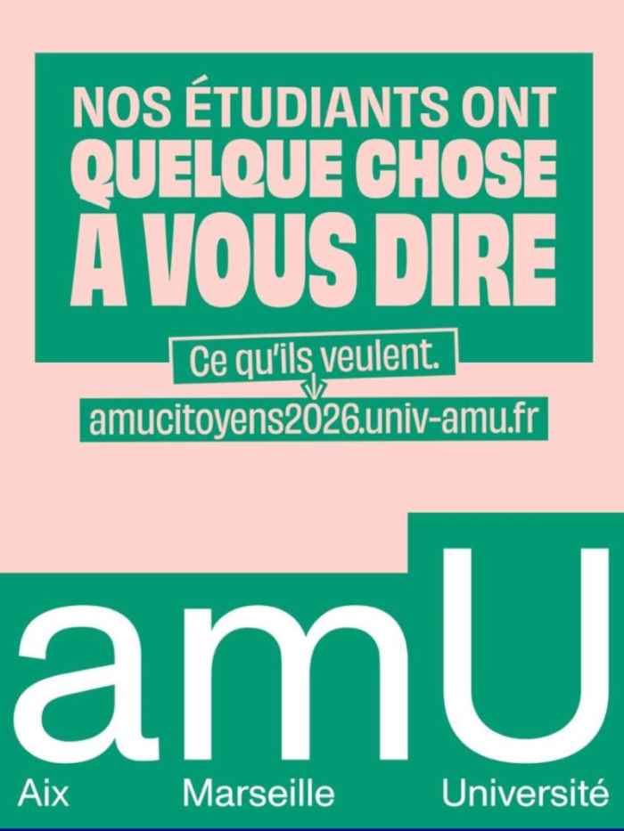 La campagne a été déployée sur les réseaux sociaux d’amU et en affichage sur le mobilier urbain aux abords des campus, à Marseille et à Aix-en-Provence et dans le réseau métropolitain jusqu’au 25 février 2026.