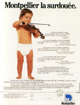 Sur le plan institutionnel, la décentralisation va aussi avoir une influence directe sur la communication publique. Les lois de 1982 donnent de nouveaux moyens et compétences aux collectivités locales et créent les régions, dotées d’une compétence économique. Ces transformations engendrent un besoin impérieux de communication dans les territoires. Souvenons-nous de la campagne « Montpellier la surdouée » qui met en scène dès 1982 un bébé pour vanter la ville. Dans un même mouvement, les campagnes d’image se multiplient et les logos foisonnent : « la Provence Alpes Côte d’Azur voit le futur avec passion » (1984), « l’Aquitaine est force vive » (1985), « La performance a son département, les Hauts de Seine » (1987), « Europe des cerveaux, Lyon crâne » (1988).