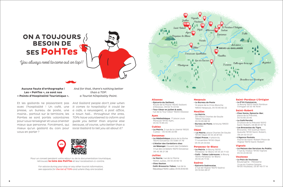 - des informations du territoire avec : la documentation générale Brive Tourisme et les documents existants spécifiques à leur village (rando, livret enfant, plan, etc.) ;