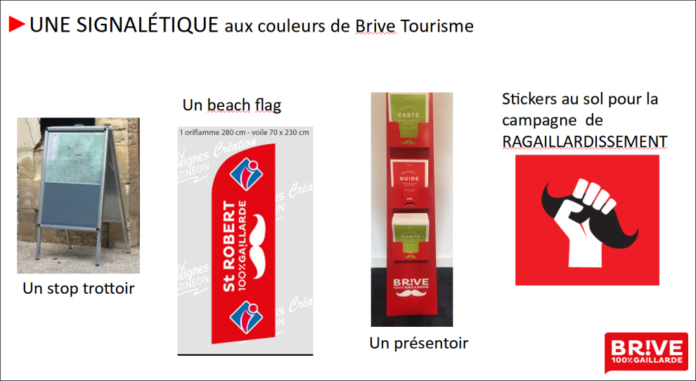 Brive Tourisme gère l’accueil, l’information, l’animation et la promotion touristique locale sur le territoire de Brive-la-Gaillarde en Corrèze et des 48 communes de son agglomération (communauté d’agglomération du Bassin de Brive). L’office de tourisme déploie avec succès depuis 2004 son positionnement 100 % Gaillard (avec la moustache) à travers une stratégie de communication, une plateforme de marque, des actions ciblées sur les réseaux sociaux, et une boutique.