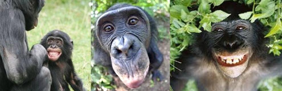 Voici une nouvelle preuve du parallélisme quasi parfait entre les communicants et les bonobos. Sur les capacités de ces singes à communiquer, on peut lire, toujours sur le site Pin primates : « Les bonobos ont des visages extrêmement expressifs, avec une pléthore de signaux faciaux.». Tout personne ayant côtoyé de près des communicants, même un court instant, a pu apercevoir également différentes mimiques absolument expressives :
