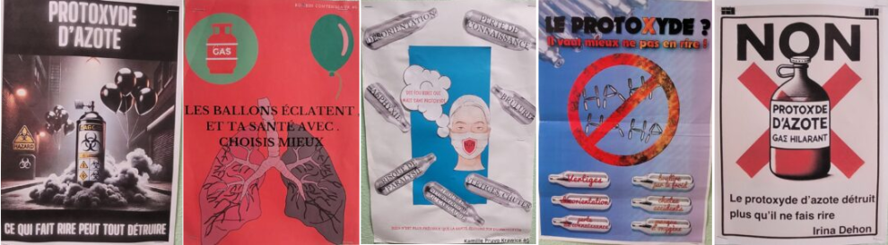Ce sont les élèves de 4e G du collège Saint Jean-Baptiste de La Salle à Valenciennes qui ont travaillé en 2025 sur des affiches de prévention contre le protoxyde d’azote. Dans le cadre du cours de physique-chimie, ce gaz a été étudié dans son usage médical en tant qu’anesthésiant et antalgique, ou comme carburant pour les fusées. Une occasion pour prévenir les jeunes qui l’utilisent en tant que « drogue ». Les affiches ont été exposées dans l’établissement.
