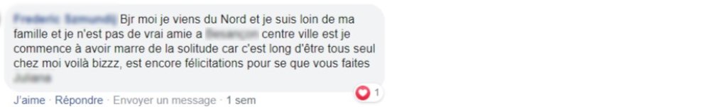 « BONJOUR SES POUR VOUS DIRE QU SI ON EST BIEN EN CONFIMENT QUAND VOISIN NOTRE VOISIN QUE SONT FILS VIENT TOUT LES SOIR DU HAVRE IL ON TOUJOUR DU MONDE CHER EU. »
