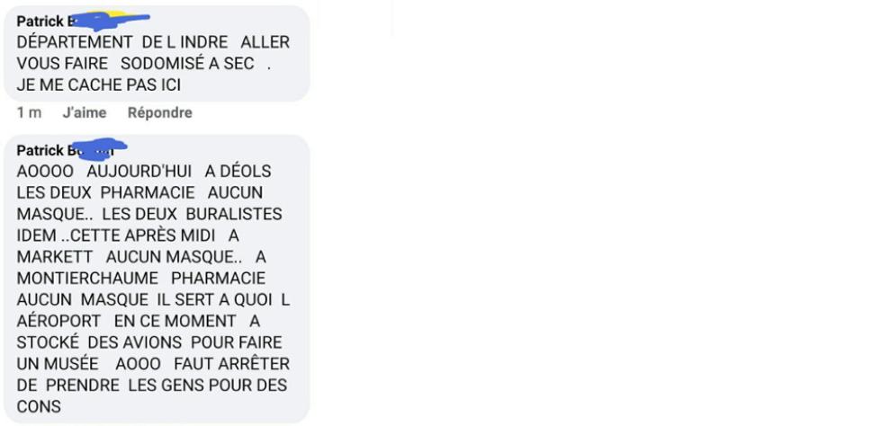 « Si vous n'avez besoin de rien, appelez le 0800 xxx xxx. Même si vous payez 2 000 € d'impôts fonciers à Bordeaux et que vous y êtes confiné, par choix pour rester avec votre compagnon, la logique administrative de la Métropole veut que vous n'aurez pas droit à un masque… mais je ne peux pas non plus aller chercher celui de ma commune à plus de 100 km. Tough luck and fucked-up, comme disent les Anglo-Saxons ! Finalement, je ferai venir mon masque de l'étranger, cela me distanciera de l'hypocrisie politique quotidienne et navrante de mon pays qui part en couilles comme à l 'époque où ces mêmes municipalités vendaient à nos parents les étoiles qu'elles les obligeaient à porter. L'histoire se répète au moins dans la qualité low-cost et mensongère de la gestion de crise à la française. »