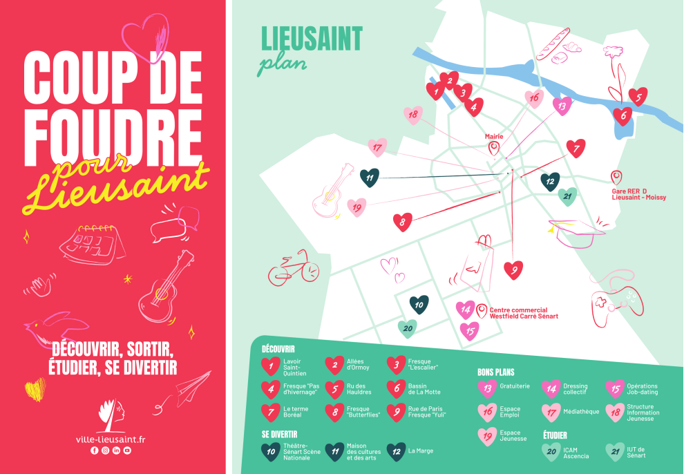 « Le 14 février au soir, une animation spécifique était organisée par le cinéma pour la sortie du dernier Bridget Jones et nous avons également tenu un stand et diffusé nos goodies (porte-clés, chaufferettes) et un guide présentant l’attractivité de la ville pour les jeunes, avec ses offres de formation, bons plans, etc., baptisé “Coup de foudre pour Lieusaint”. Un document pérenne qui peut aussi s’adresser à tous les publics. »