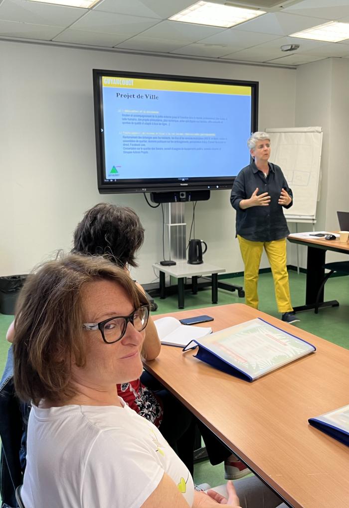 The request from Stefania Berreta, Erasmus+ project coordinator for the Ligurian Order of Journalists, related to institutional and diplomatic communication. “As part of this, I think it was really interesting to plan a meeting with the Cap’Com network to understand what it does and what its working methods are.” In addition to their interest in the Cap’Com cooperative, the 14 members of the delegation all expressed the wish to “meet local French public communicators to see how they work, what their training path is and observe them in their day-to-day work”. Their host was Anne-Caroline Poincarré, a member of the Cap’Com Steering Committee and Director of Communications in Guyancourt. Over the course of a busy morning, she presented her department’s responsibilities, the challenges of communications at this level and the functional relationships involved. She rounded off her presentation with a tour of the town hall. This was followed by a presentation by the Managing Director of Cap’Com, who gave an overview of how the French public communicators’ network works, followed by a look at current developments. At the end of the session, François Morton, Mayor of Guyancourt (27 801 residents), came to greet the Italian visitors and answer their questions.
