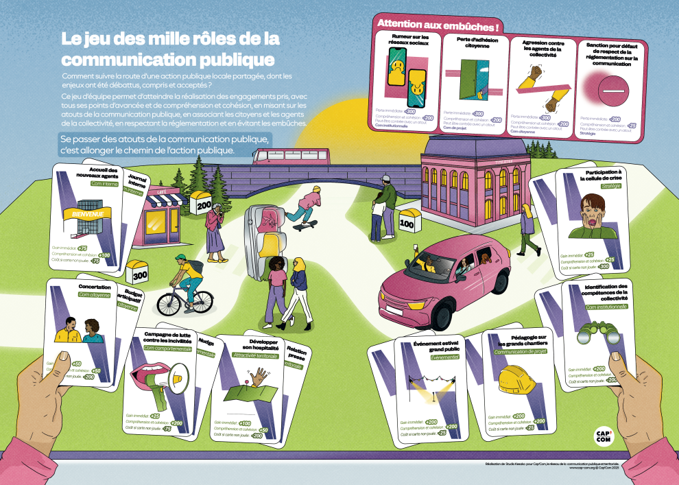 Le jeu fictif des mille rôles de la communication publique se veut ludique et illustratif pour valoriser des actions publiques locales concertées, expliquées et valorisées.