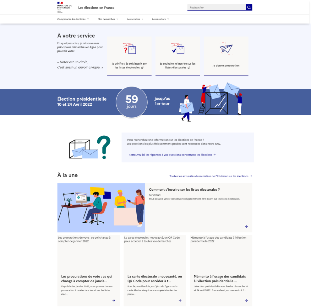 À l’approche des élections présidentielle et législatives de 2022, le ministère de l’Intérieur crée un nouveau portail internet afin d’accompagner électeurs et candidats dans leurs démarches électorales.