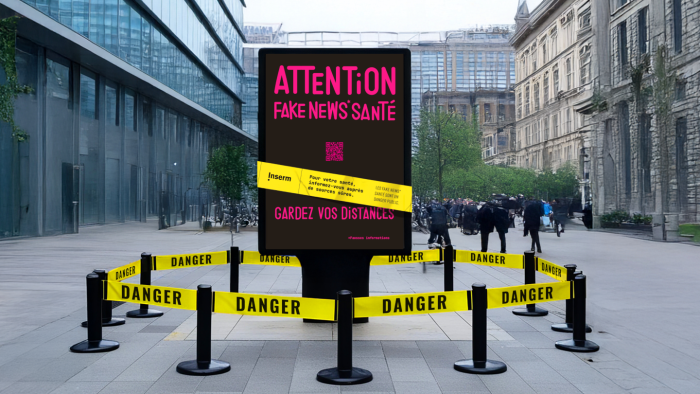 « Il existe cinq dangers majeurs pour la population : les risques naturels, épidémiques, technologiques, les menaces cyber et terroristes. Mais pour l'Inserm, il en existe un 6e : les fake news santé. » En ouverture du court film (30 secondes) de sensibilisation à la désinformation médicale en ligne, le ton est donné. Avec cette campagne d’un nouveau genre, conçue par l’agence Insign, Carine Delrieu et Priscille Rivière, responsables de la communication Inserm, expliquent : « Nous avons voulu créer un électrochoc citoyen en matérialisant le risque invisible que représentent les fake news. Il était temps d’alerter, de montrer, de dire. »