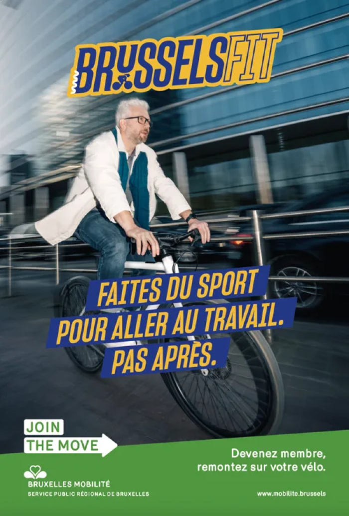 ”Why shut yourself away in a gym after work when you can work out on the way to work? Join BrusselsFit and get back on your bike”, says the launch campaign of Brussels’ regional public transport service. The promotional video uses a sales pitch to point out the absurdity of certain practices and uses humour to highlight the benefits of this “new” service: “With over 161 square kilometres, its 260 km of cycle paths and its air conditioning, BrusselsFit is also the first gym you don’t need a membership for.”