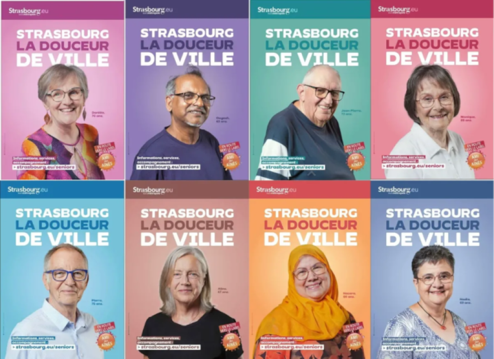 Huit affiches présentant huit seniors illustrent « la douceur de ville » de Strasbourg. L’une d’elles met à l’honneur une femme âgée, joyeuse et… voilée. Cela suffit aujourd’hui à provoquer des réactions hostiles.