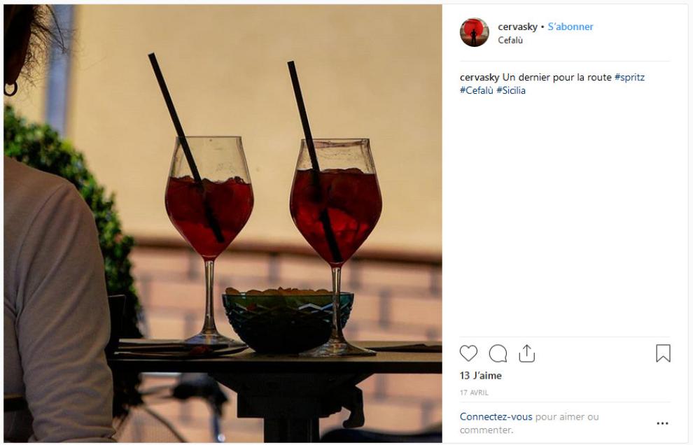 Autre exemple pétillant : un célèbre cocktail frais et orangé qui commence par un S et se termine par un Z. Cantonné il y a quelques années seulement dans les villes touristiques du nord de l’Italie, aujourd’hui on le trouve, aux beaux jours, à toutes les terrasses des cafés d’Europe. Car il s’agit bien là d’un apéritif tout à fait instagrammable. Une requête sur son nom affiche ainsi plus d’1 million de résultats. Quand le réseau social popularise une boisson alcoolisée.