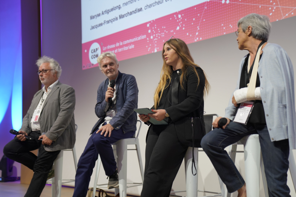 Ces deux journées autour des liaisons dangereuses entre réseaux sociaux et compublique se sont conclues par une conférence sur l'impact des réseaux sociaux et des algorithmes sur le débat public et démocratique. Une conversation entre Jacques-François Marchandise, chercheur et prospectiviste indépendant, professeur associé, université Gustave Eiffel, et cofondateur de la Fing, et Maryse Artiguelong, vice-présidente de la Ligue des droits de l'homme, animée par Xavier Cazard, cofondateur de la Maison de la conversation, et Bettina Allet Amsellem, consultante et étudiante au Celsa, qui a ouvert le débat et pointé des solutions possibles pour préserver les échanges numériques.