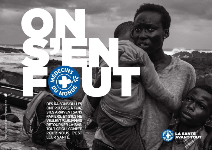 « On s’en fout. » La campagne de communication de fin 2023 de Médecins du monde se veut marquante. « Le parcours de chacun, son expérience de vie ne font jamais obstacle aux soins que nous devons lui apporter », a rappelé le président de l’association. Que la personne soit un migrant, un usager de drogues, une travailleuse du sexe ou toute autre personne née homme ou femme ou autre, et quelles que soient sa religion, son apparence ou ses convictions : tout le monde a le droit à la santé, précise Médecins du monde, le reste, « on s’en fout ».