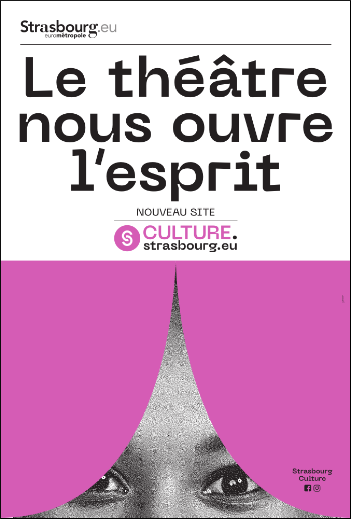 Une campagne institutionnelle pour valoriser la politique culturelle de l’Eurométropole de Strasbourg et qui s’appuie sur le pouvoir transformateur de la culture dans notre société. Pour toucher tous les publics dans ses affinités et pratiques culturelles, le slogan principal « La culture nous transforme » est décliné autour de 7 thématiques et sur tous supports. Une campagne réalisée en cohérence avec la charte graphique « culture » de la collectivité et renvoyant sur le nouveau site « culture » dont la fréquentation a largement augmenté.