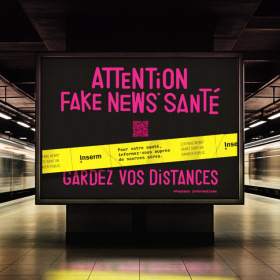 L’Institut national de la santé et de la recherche médicale (Inserm) alerte sur la propagation de fausses infos dans le domaine de la santé sur les réseaux sociaux, via une campagne multicanale s'appuyant sur des codes visuels familiers (triangles de signalisation, produits miracles factices, etc.), histoire de bien ancrer les dangers du virtuel dans le réel. Et ça marche ! (1,2 million de vues sur YouTube depuis octobre.)