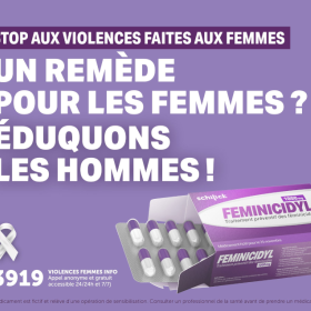 La nouvelle campagne de la ville de Schiltigheim détourne les codes de la publicité pharmaceutique pour rappeler que l’éducation des hommes et des garçons à l’égalité et au respect est le seul remède contre les violences faites aux femmes.