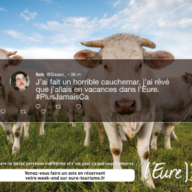 Le département de l'Eure affiche les avis négatifs sur son territoire et les retourne habilement à l'aide de ses habitants dans une campagne intitulée « L'Eure ne laisse personne indifférent ».