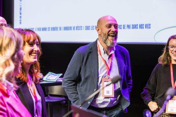 - Avec Sophie Guillain, directrice générale de Res publica, Ilana Darras et Julien Fayant, membres du conseil d’administration de l’Anacej et Baptiste Camus, directeur de la concertation citoyenne de la ville de Villeurbanne