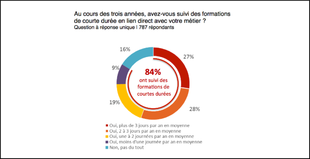 Ils sont super diplômés mais souhaitent se former davantage. Selon l’étude Radioscopie des communicants publics, 50 % des communicants publics ont suivi une longue formation initiale menant au moins au niveau d’un master (bac +5). Raison de plus pour continuer à se former tout au long de sa vie professionnelle. Autant pour rester à la page des nouveaux outils, notamment numériques, que pour progresser et évoluer dans son poste et apprendre ce qui n’est pas toujours enseigné à l’université.
