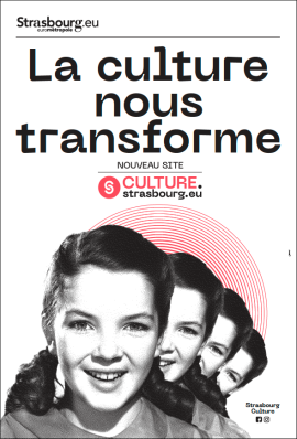 Une campagne institutionnelle pour valoriser la politique culturelle de l’Eurométropole de Strasbourg et qui s’appuie sur le pouvoir transformateur de la culture dans notre société. Pour toucher tous les publics dans ses affinités et pratiques culturelles, le slogan principal La culture nous transforme est décliné autour de sept thématiques et sur tous supports. Une campagne réalisée en cohérence avec la charte graphique « culture » de la collectivité et renvoyant sur le nouveau site « Culture » dont la fréquentation a largement augmenté.